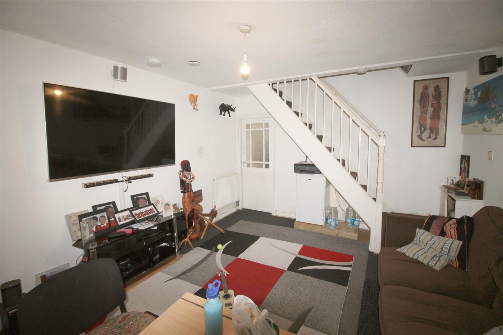 Spacious reception room with double-glazed door to rear courtyard, radiator, carpeted flooring, door through to kitchen.