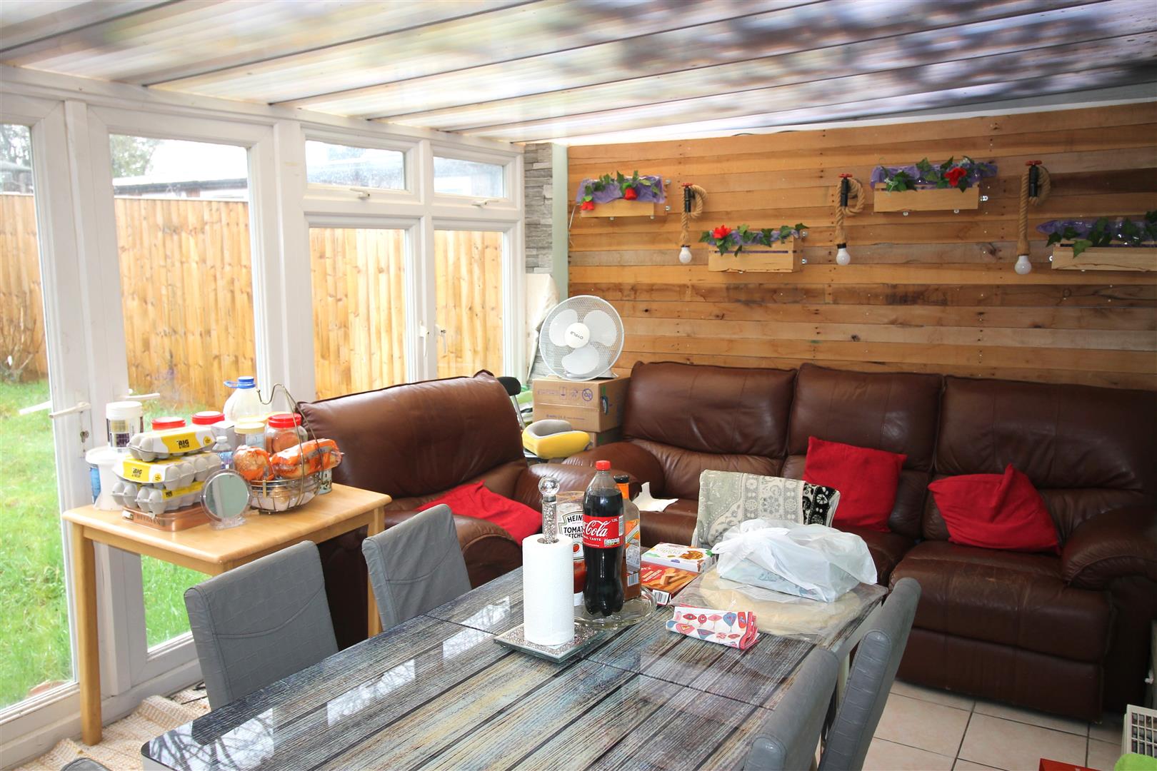 The property comprises a entrance hall, open-plan lounge/diner, kitchen, extended conservatory, three bedrooms, downstairs shower room, and a family bathroom. The property further benefits from a driveway with parking for several vehicles, garage, and a rear garden.